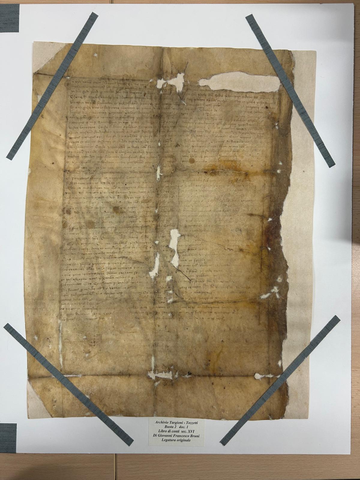 Sempre grazie ad un finanziamento della DGA, per tramite della Soprintendenza, sono state fatte restaurare 16 unità archivistiche del Fondo, ad opera del Laboratorio di restauro di S. Maria di Rosano (Firenze).